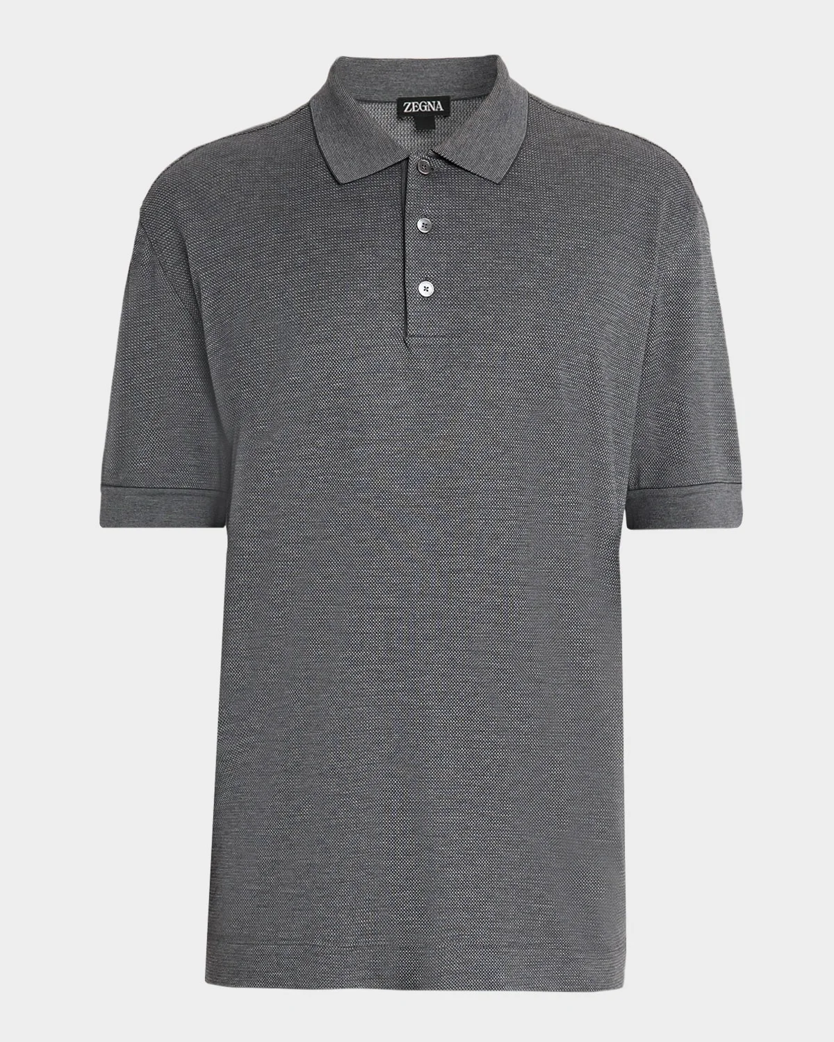 The subtle tipping on the collar enhances the premium cotton and silk texture of this polo shirt by ZEGNA. Spread collar Threebutton placket Short sleeves Vented sides Classic fit Pullover style Cotton/silk Hand wash or dry clean Imported