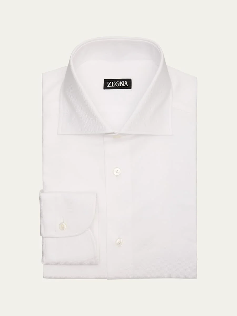ZEGNA dress shirt characterized by a solid textured cotton oxford weave Spread collar Button placket Long sleeves Round barrel cuffs Shirttail hem Classic fit Cotton Unlined Dry clean, machine wash line dry Imported