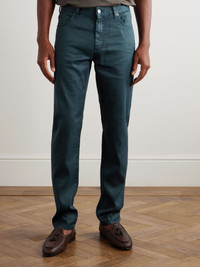 Roccia Slim-Fit Straight-Leg Garment-Dyed Linen-Blend Trousers Teal