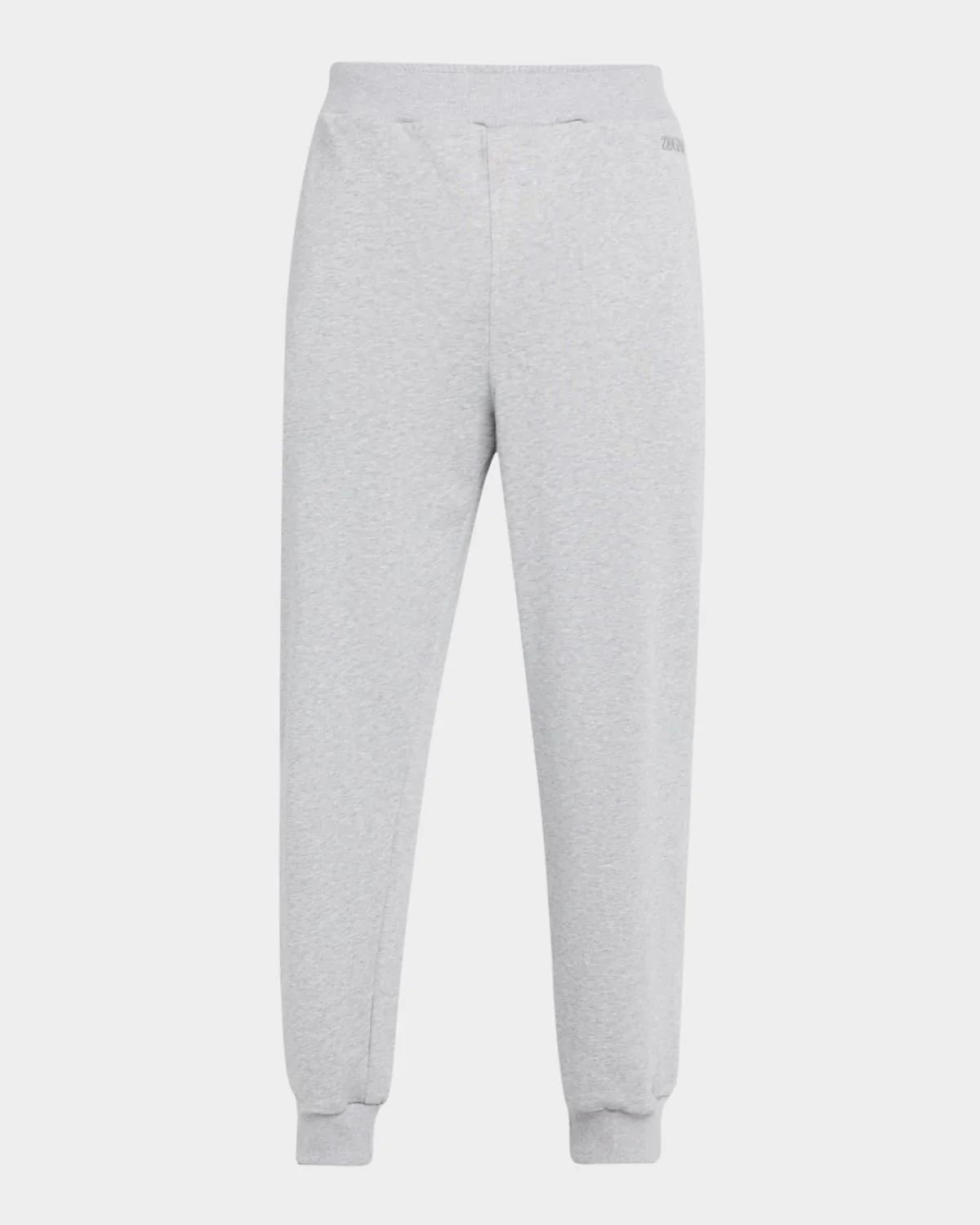 ZEGNA sweatpants in heathered cotton for sumptuous dimension Tonal embroidered logo lettering on the left hip provides understated branding Regular rise Flat front Side slip pockets Back welt pocket Classic fit through tapered legs Ribbed cuffs Elasticized waistband Pull-on style Cotton Machine wash warm Made in Italy