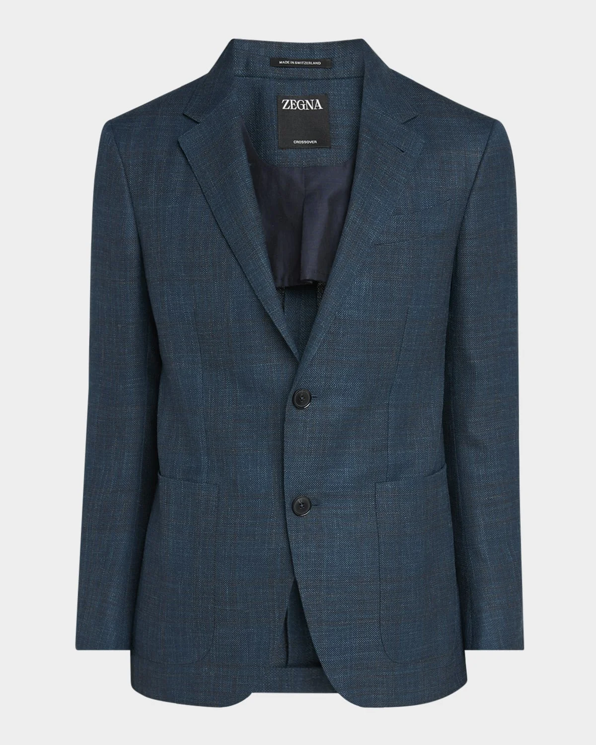 ZEGNA sport coat in tonal plaid Notched lapels Two-button closure Chest welt pocket Hip patch pockets Interior welt pocket Four-button sleeve finish Double-vented back Wool/silk/linen Dry clean Made in Italy