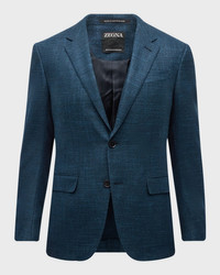 - ZEGNA blazer crafted of soft, breathable Crossover summer fabric - Notched lapels - Two-button closure - Chest welt pocket - Side flap pockets - Shaping darts on front - Unfinished sleeves - Double-vented back - Wool/cashmere - Dry clean - Made in Italy - Model is 6'1"/185cm.