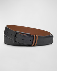- ZEGNA belt in grained calfskin - Approx. 1.26"W - Enamel prong buckle - Leather belt keeper straps - Cut to size - Leather - Wipe with a soft cloth - Made in Italy