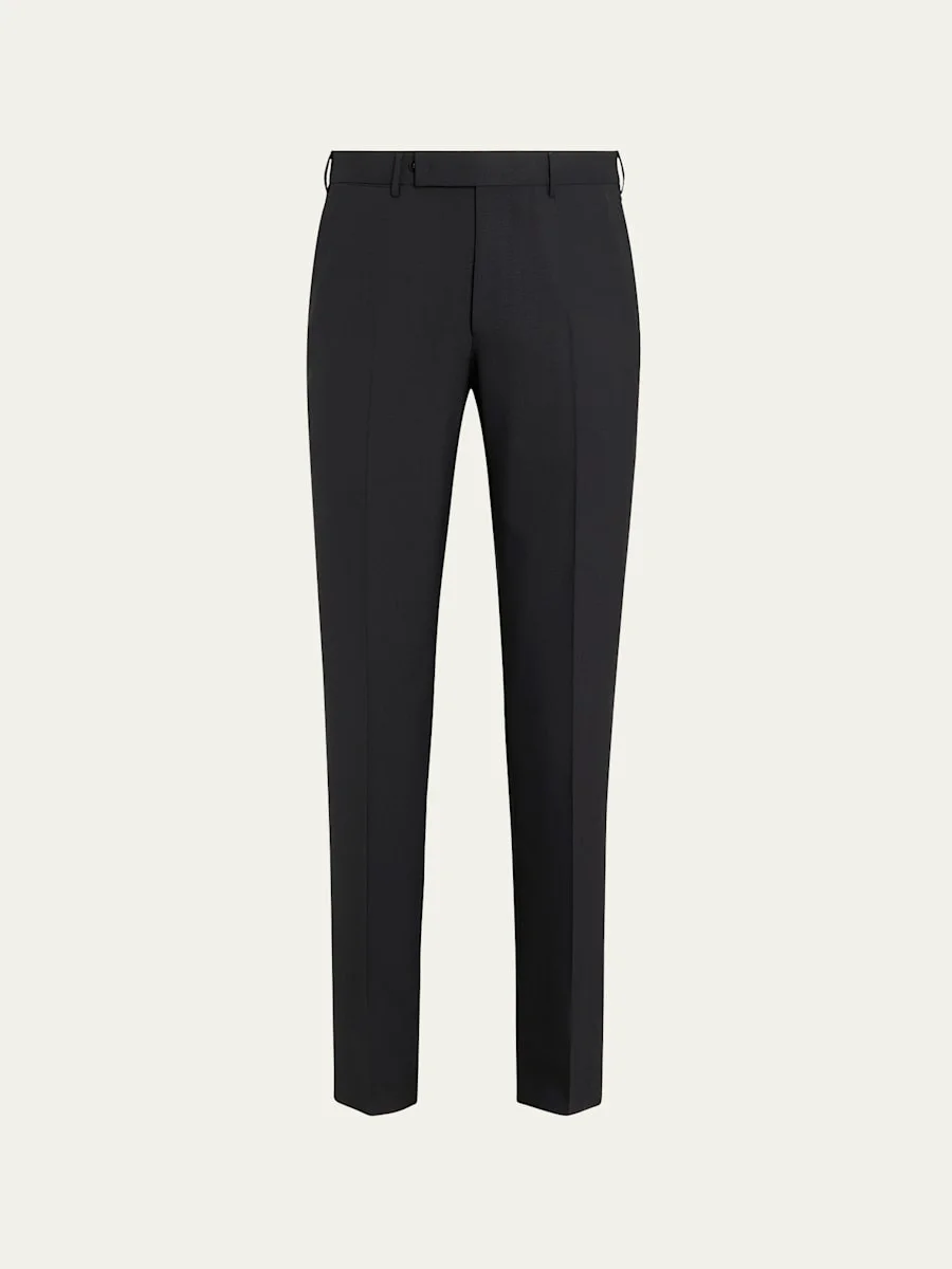 ZEGNA High Performance™ wool tailoring pants Breathable, lightweight and wrinkle resistant Regular rise Flat front Front slant pockets Back welt pockets with button closure Full length Slim fit Professional cleaning recommended Made in Switzerland Model is 6'1"/185cm. Online Inquiries: BGS21_NC55T| Store Inquiries: #4808571
