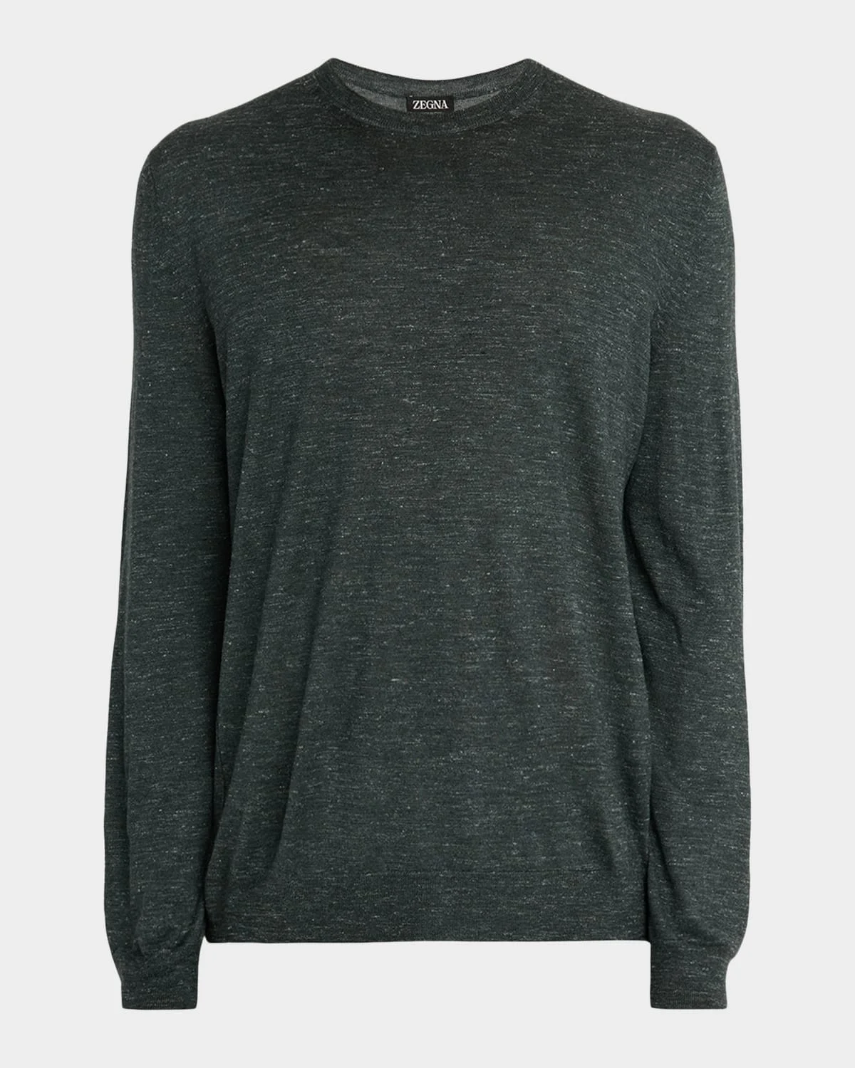 Fine knit melange silk, cashmere, and linen fibers define this premium ZEGNA Tshirt. Crew neckline Long sleeves Ribbed cuffs and hem Pullover style Classic fit Silk/cashmere/linen Unlined Dry clean, hand wash Made in Italy