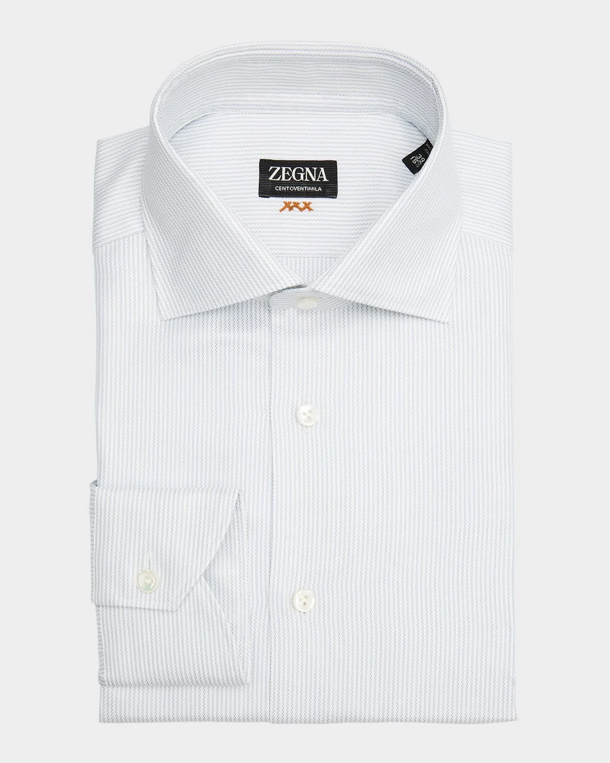 - ZEGNA micro-stripe dress shirt in Centoventimila cotton, resulting in an extremely lightweight and soft, silk-inspired hand - Genuine mother-of-pearl buttons - Point collar - Button placket - Long sleeves - Single-button cuffs - Classic fit - Cotton - Unlined - Dry clean, machine wash line dry - Made in Italy