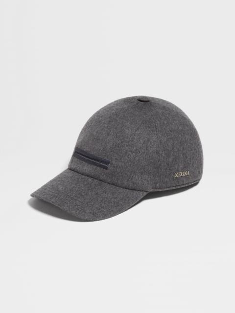 The dark grey melange Oasi Cashmere baseball cap is Zegna's answer to contemporary, casual style. INFO Made from one of the brand's softest cashmere fabrics, the dark grey melange Oasi Cashmere baseball cap's luxuriously smooth exterior makes a statement on its own. The metallic Zegna Logo and embroidered Zegna 232 Road Brand Mark add an extra accent. The cap is fitted with an elasticated closure in the back and is lined with soft wool and cashmere. Perfect as a gift for those who appreciate style. PRODUCT CODE Z8I09HA8-B8D-GR1 MATERIALS AND CARE Main body: 100% Cashmere Lining: 90% Wool; 10% Cashmere The inspiration behind this Oasi Cashmere Collection garment was Born in Oasi Zegna, a 100km² natural territory and the home of our values. It's crafted from Oasi Cashmere fibres, which ZEGNA commits to certifying as traceable from 2024. The Oasi Cashmere Collection follows in the footsteps of our founder, who envisioned a vertically integrated system of producing textiles. Do not wash. Do not bleach. Do not tumble dry. Do not iron. Do not dry clean. FIT AND PRODUCT DETAILS • Wool and cashmere lining • Elasticated back closure • Metallic Zegna Logo • Embroidered Zegna 232 Road Brand Mark on the front • Made in Italy • Fits true to size