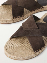 ZEGNA's 'Panarea' sandals have the same braided jute midsoles as classic espadrilles. Made in Spain with wide, crisscrossing suede straps, they feature lightly cushioned leather heel pads and rubber traction for grip. Size & Fit - Fits true to size. Take your normal size - Only available in full sizes, go up to the nearest whole size if you take a half size - UK sizing Details & Care - Brown suede (Calf)