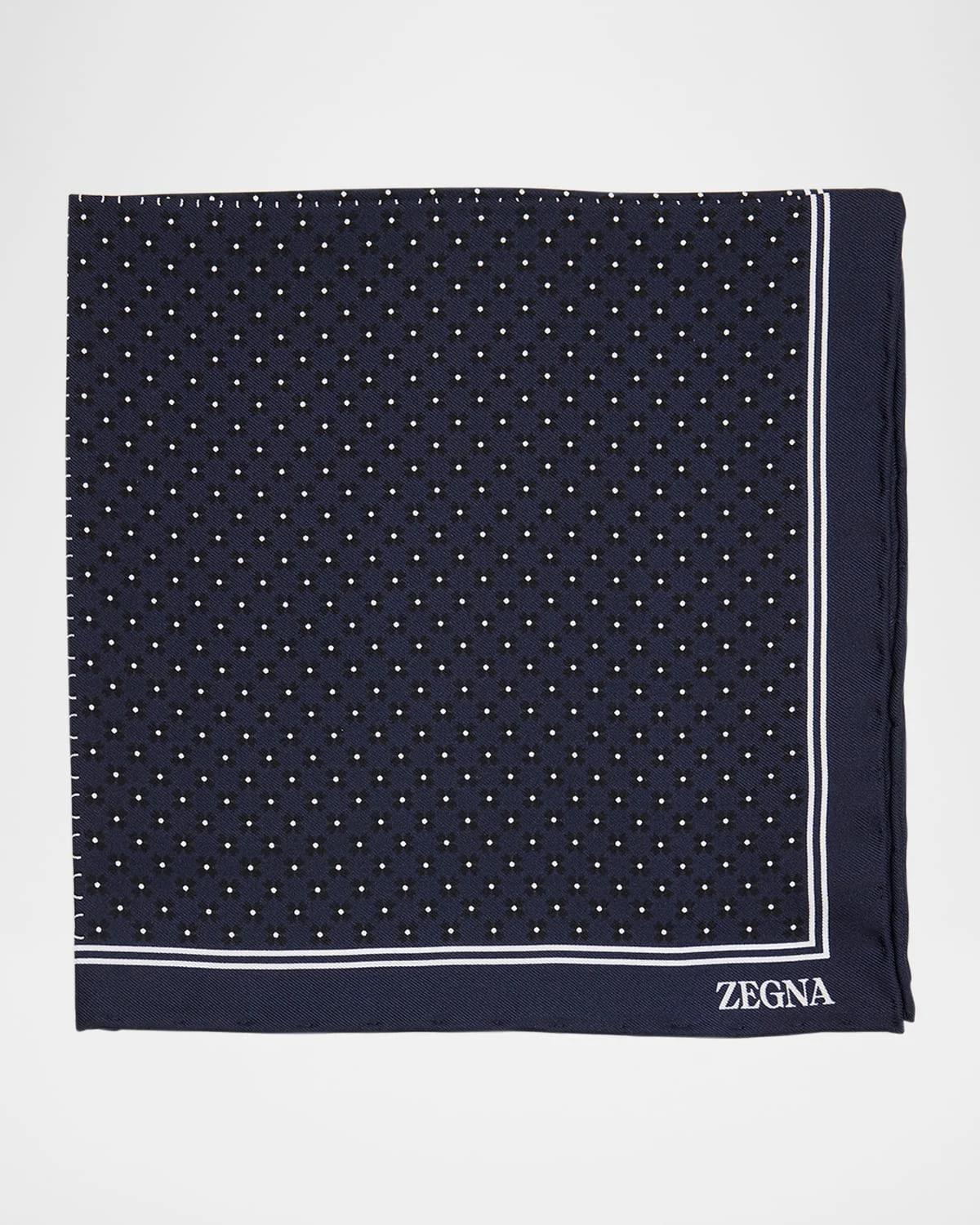 - ZEGNA pocket square in silk, showcasing a small geometric floral print - Double-stripe border - Logo on the corner - May be styled multiple ways - Silk - Do not iron, dry clean - Made in Italy