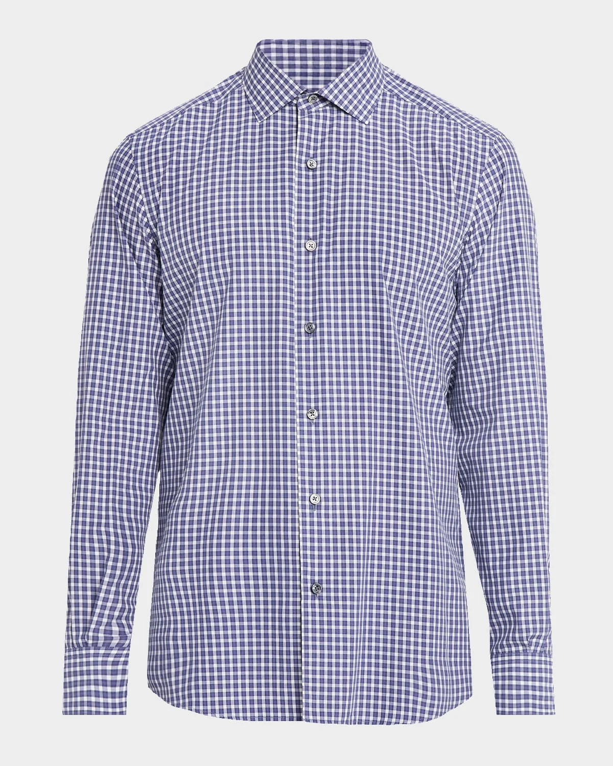A small plaid print adds a timeless allure to this breathable cotton buttondown shirt from ZEGNA. Genuine motherofpearl buttons Point collar Button placket Back yoke; knife pleats Long sleeves Round barrel cuffs Curved hem Classic fit Cotton Dry clean Imported