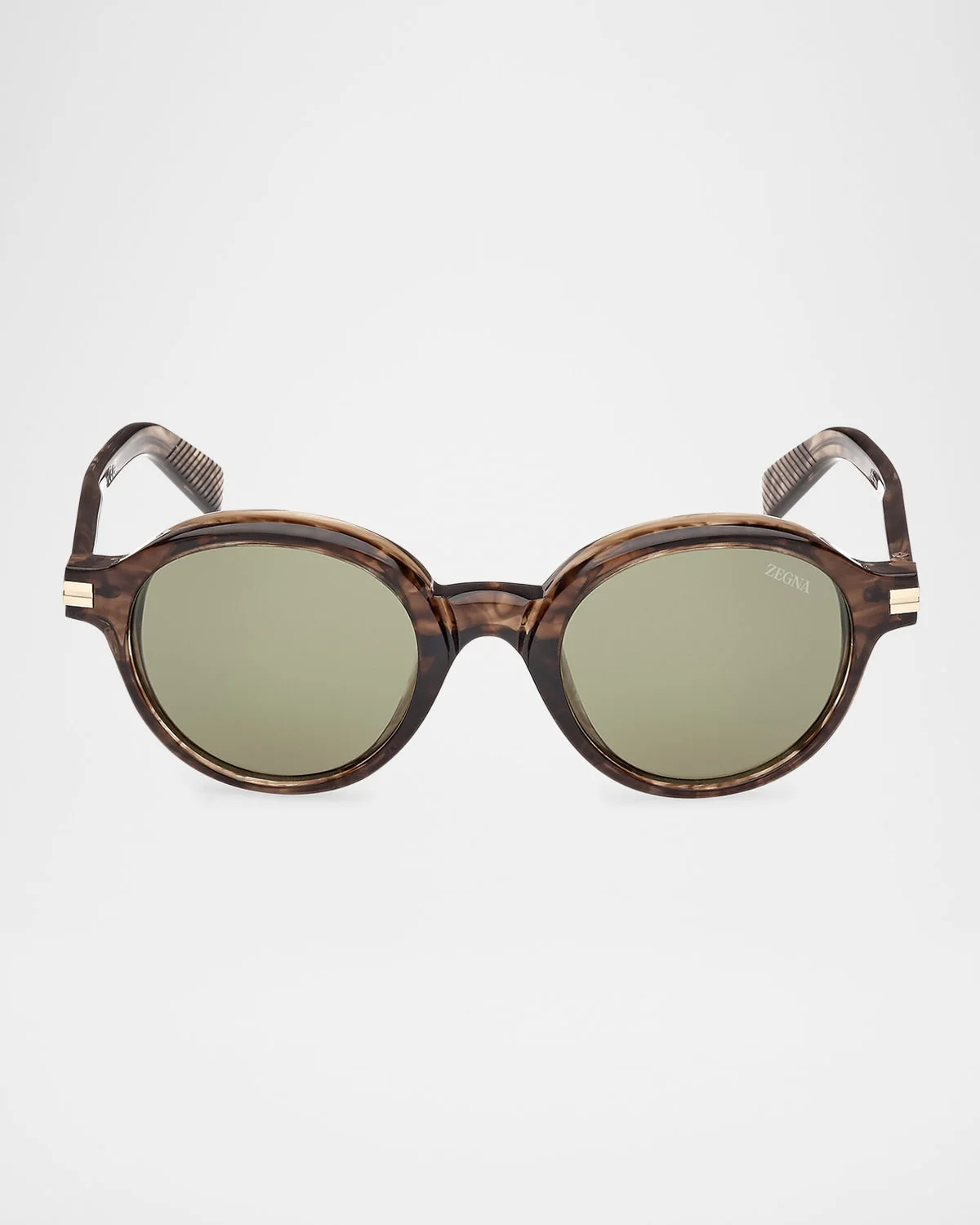 - ZEGNA sunglasses in acetate - Eye/bridge/temple (in mm): 50-22-145 - Eyewear style: Round - Solid-color lenses - Metal hinge detail - Spot clean - 100% UVA/UVB protection - Made in Italy - Proposition 65 warning for California residents