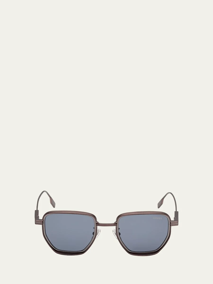 ZEGNA sunglasses in metal and acetate Eye/bridge/temple (in mm): 49-22-145 Eyewear style: Round Solid-color lenses Adjustable nose pads Spot clean 100% UVA/UVB protection Made in Italy Proposition 65 warning for California residents Online Inquiries: BGS21_ND2QJ| Store Inquiries: #4954006