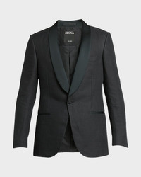 - ZEGNA two-piece tuxedo suit - Shawl lapels; one-button front - Finished sleeves - Front welt pockets - Flat-front trousers - Modern fit - Linen - Dry clean - Made in Italy - Model is 6'1"/185cm.