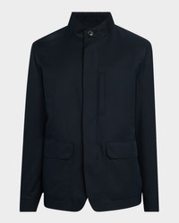- ZEGNA solid car coat - Mock neckline - Concealed button/zip closure - Vertical chest pocket - Lower flap pockets - Adjustable cuffs - Straight hem - Polyester - Back lining: Wool - Details: Calf leather - Dry clean - Made in Italy