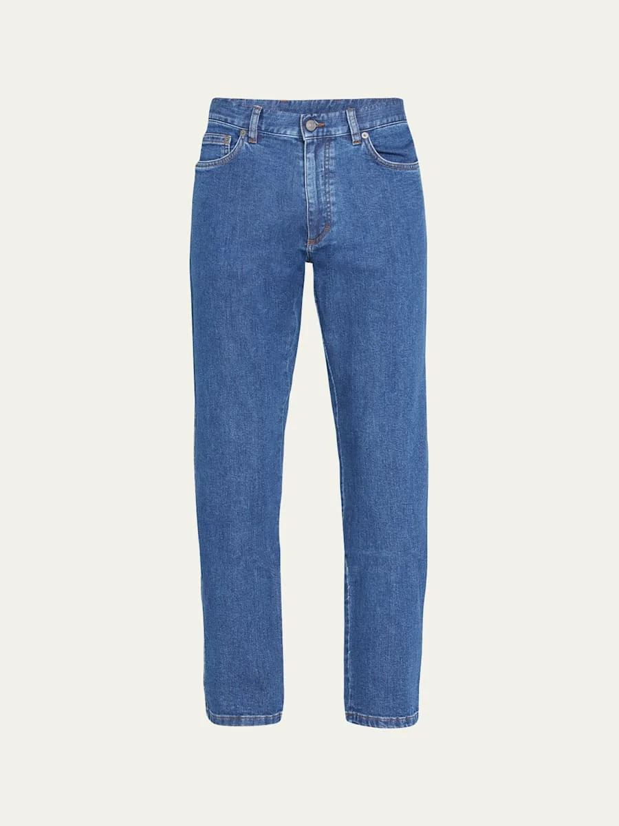 ZEGNA jeans featuring stonewash denim for a relaxed, wornin appearance Buttonzip front; belt loops Regular rise; flat front Fivepocket style Logo patch at back Straight legs Full length Classic fit Cotton/elastane Made in Italy