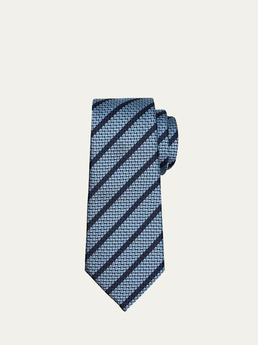 ZEGNA tie crafted from luxurious silk jacquard showcasing a diagonal geometric stripe pattern Silk Dry clean Made in Italy Online Inquiries: BGS21_NCW7E| Store Inquiries: #4963553