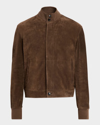 The ZEGNA jacket is crafted from luxuriously soft calf suede, complemented with soft ribbed trims Zegna 232 Road Brand Mark on the back neck Ribbed stand collar; button closure Concealed zip front Side welt pockets Ribbed cuffs and hem Classic fit Leather Lining: Wool/cupro Dry clean Made in Italy