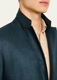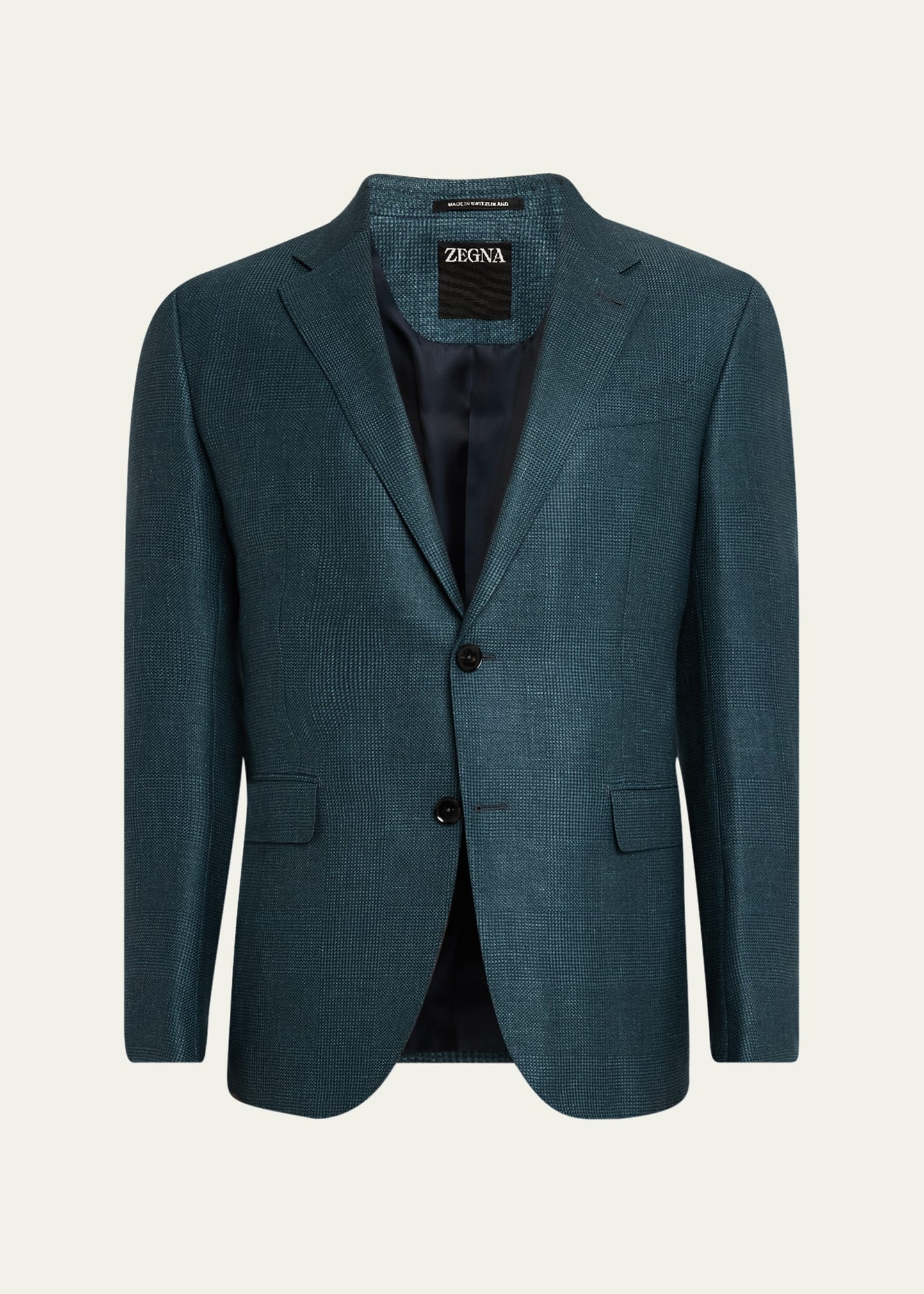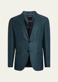 ZEGNA sport coat in tonal plaid Notch lapels; buttonhole at left lapel Chest welt pocket Hip flap pockets Interior welt pocket Unfinished sleeves Double-vented back Cashmere/linen/silk Dry clean Made in Italy Online Inquiries: BGS21_NCM06| Store Inquiries: #4915016