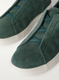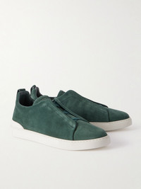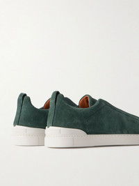 ZEGNA's sneakers are well-made and versatile, so you'll be able to wear them often. Made in Italy with suede uppers, they're fitted with elasticated inserts so they're easy to get on and off and detailed with signature 'Triple Stitch™' embossing along the heels. Size & Fit - Fits true to size. Take your normal size - UK sizing Details & Care - Forest-green suede (Calf) - Style number: LHSOY S4667Z