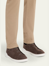 ZEGNA suede lowtop sneakers feature the iconic triplecrossed elastic vamp for an easy slipon style Lightweight and flexible, this refined design is a luxurious take on casual footwear for fastpaced lifestyles Flat heel Round toe Embossed logo at tongue Leather lining Pull tab at backstay Rubber outsole Made in Italy