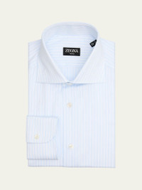ZEGNA dress shirt in distinctive Trofeo™ cotton, accented with a multistripe print Trofeo cotton is made from fine, long fibers for a silky smooth finish and added wrinkleresistance Spread collar Button placket Long sleeves Round barrel cuffs Shirttail hem Cotton Dry clean, machine wash line dry Imported