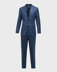 - ZEGNA suit in melange check - Notched lapels - Two-button closure - Chest welt pocket; side flap pockets - Unfinished sleeves - Double-vented back - Darted trousers - Straight legs - Superfine Trofeo™ wool - Dry clean - Made in Italy - Model is 6'1"/185cm.