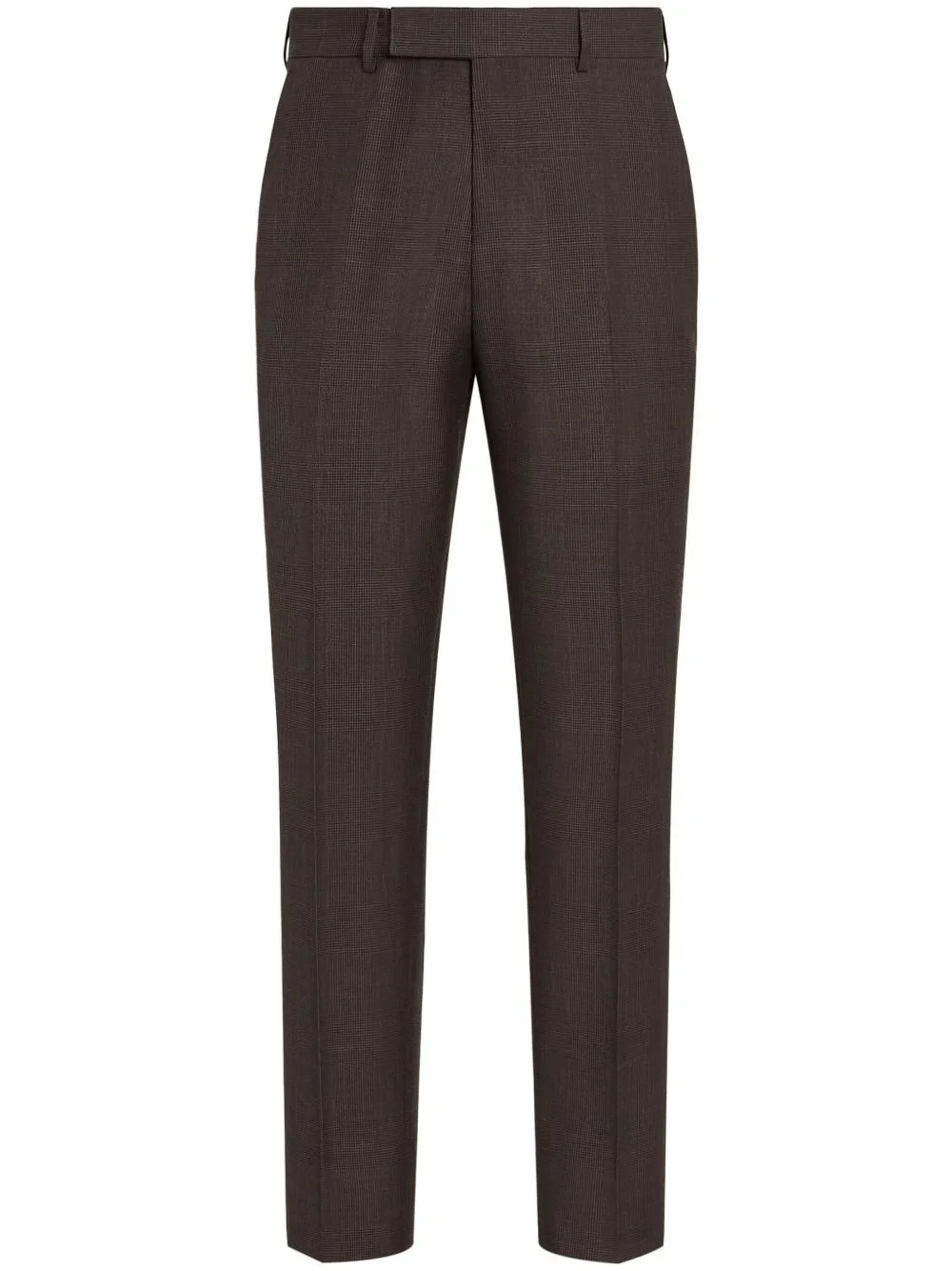 tailored trousers Highlights - Dark brown - Concealed front fastening - Two side slash pockets - Two rear welt pockets - Belt loops Made in Italy Composition Wool 71%, Silk 17%, Linen/Flax 12%