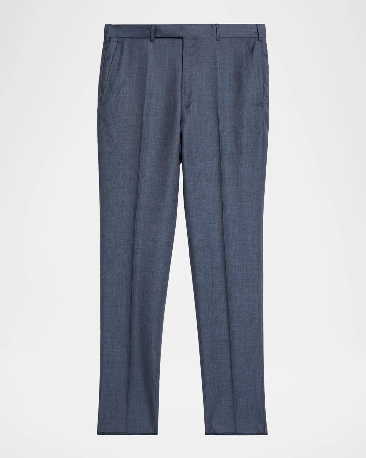 ZEGNA pants cut from Trofeo, a fabric woven from superfine Australian Merino wool, renowned for its natural breathability and long, elastic fibers that deliver exceptional comfort and a smooth finish Regular rise Flat front with a tabbed waist emphasizes clean lines Side slant pockets; buttoned back pockets Slimfit legs with center crease Buttontab/zip fly; belt loops Full length Wool Unlined Dry clean Imported