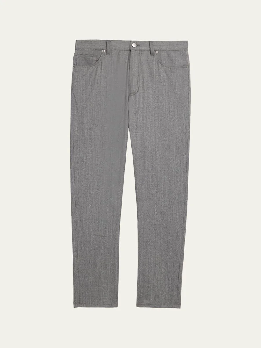 ZEGNA pants in luxe wool sharkskin for a sophisticated finish Regular rise Flat front Fivepocket style Back leather label Classic fit through straight legs Full length Buttonzip front; belt loops Wool Lining: Cotton/elastane/polyester Dry clean Made in Romania
