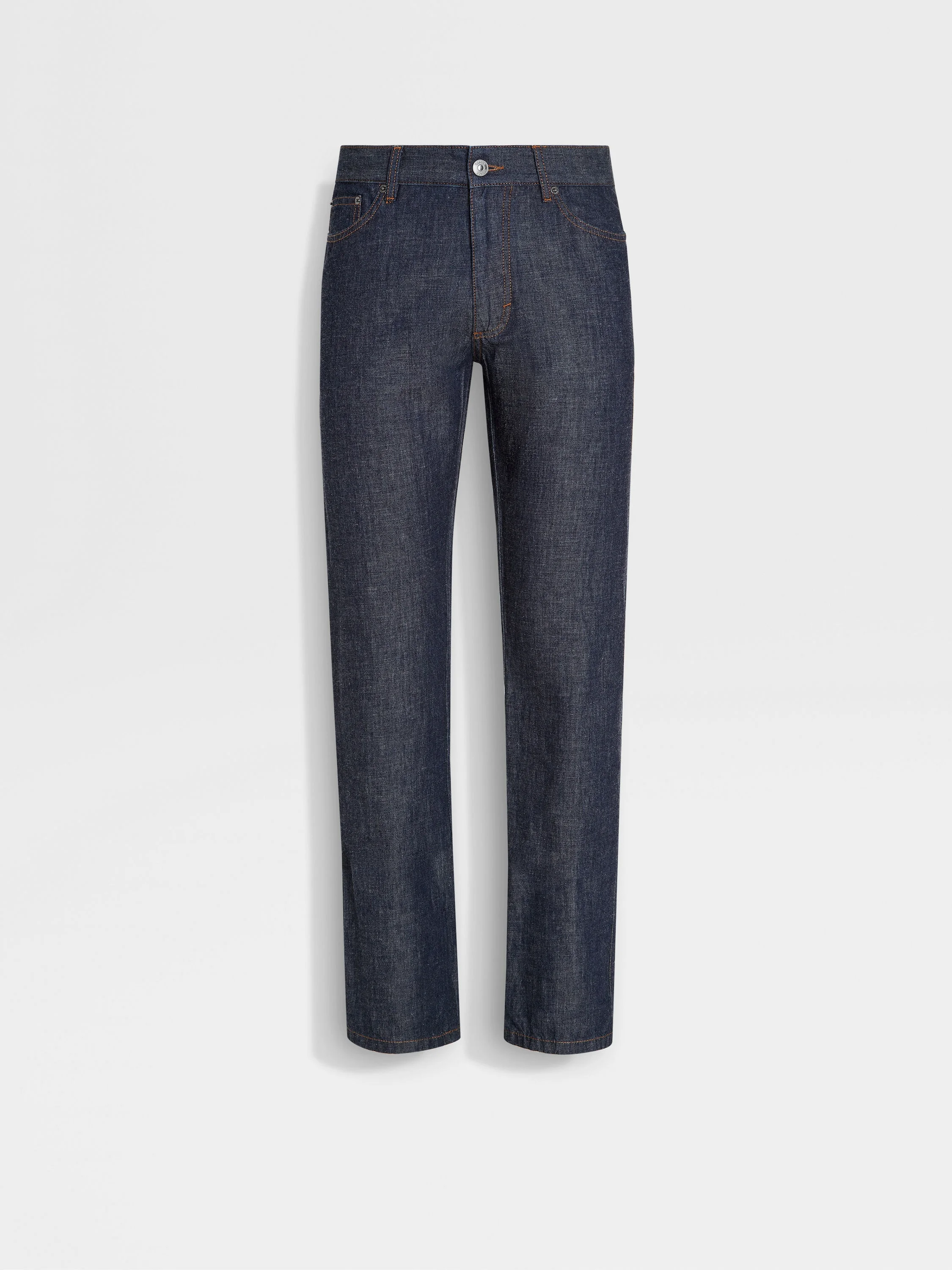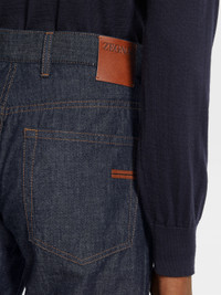 The dark blue rinse-washed cotton and linen Roccia jeans are an elegant contemporary essential. INFO An elevated take on a classic silhouette, the dark blue rinse-washed cotton and linen Roccia jeans are made from a soft blend of natural fibers. The Roccia jeans are styled with the brand's signature, slim fit. The inspiration for the Roccia Jeans, Roccia the Italian word for 'Rock', was Born in Oasi Zegna — the home of our values in the Italian Alps. Inspired by classic workwear, they're both hardwearing and elegant, making them a reliable foundation to any look. PRODUCT CODE E7I91A5-CITY-001 MATERIALS AND CARE Main body: 80% Cotton; 20% Linen Lining: 100% Cotton Max washing temp 30°C, mild process. Do not bleach. Do not tumble dry. Line drying in the shade. Iron at max 110°C. Do not dry clean. Wash separately. Wash inside out. FIT AND PRODUCT DETAILS • Slim fit • 17.5 cm narrow hem • Zip and button closure • 5-pocket style • Rinse wash • Denim weight: 6.5 ounces • Model is 187 cm tall (6.1 feet) and wears a UK size 32.
