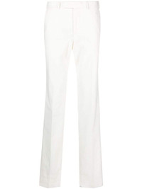 mid-rise straight-leg trousers Highlights - White - Cotton blend - Mid-rise - Front button and zip fastening - Belt loops - Straight leg - Two rear button-fastening pockets Imported Composition Cashmere 8% Outer: Cotton 91%, Elastane 1% Lining: Cotton 100% SIZE & FIT Model measurements Height 6 ft 2 in(1.89 m) Bust/Chest 37.79 in(96 cm) Hips 37 in(94 cm) Waist 29.92 in(76 cm) FittingInformation Designed for a slim fit, offering a comfortable fit that sits just away from the leg The unfinished hems allow for the length to be altered Made from a midweight stretch fabric, this piece offers elasticity and flexibility when worn This piece fits true to size – take your usual size Washing instructions Dry Clean Only
