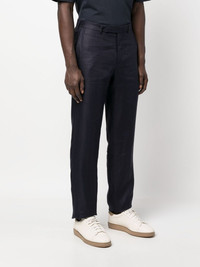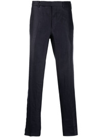 mid-rise straight-leg trousers Highlights - Navy blue - Linen - Mid-rise - Off-centre front fastening - Belt loops - Two side slit pockets - Straight leg Imported Composition Lining: Viscose 100%, Cotton 100% Outer: Linen/Flax 100% SIZE & FIT Model measurements Height 6 ft 0 in(1.84 m) Bust/Chest 35.82 in(91 cm) Hips 37 in(94 cm) Waist 28.34 in(72 cm) FittingInformation Designed for a slim fit, offering a comfortable fit that sits just away from the leg The unfinished hems allow for the length to be altered Made from a midweight non-stretch fabric This piece fits true to size – take your usual size Washing instructions Dry Clean Only