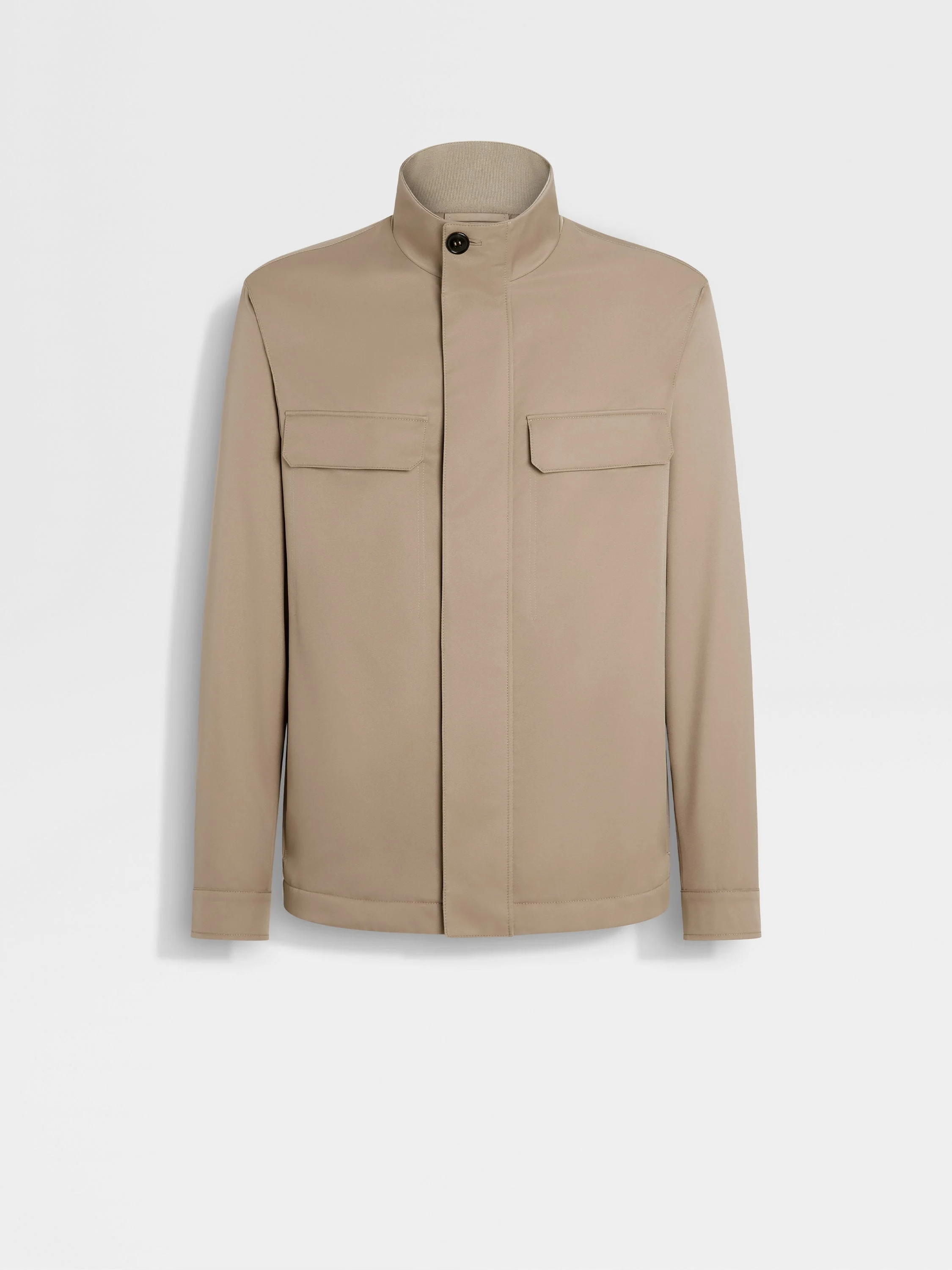 This light taupe Motorin 125cc microfiber field jacket is refined and practical in equal parts. INFO Featuring a sleek stand collar and smart shirt cuffs, the Motorin 125cc field jacket elevates a refined silhouette in light taupe microfiber for a seamless blend of style and functionality. Roomy pockets keep your essentials to hand. ''Scooter' in Piedmontese Italian, Motorin pays homage to the era when Italians commuted to Oasi Zegna on scooters. This Motorin 125cc field jacket was designed with endless outdoor adventures in mind, making it lightweight, water repellent, and windproof. PRODUCT CODE UFTC5A9-FCT577-N02 MATERIALS AND CARE Main body: 100% Polyester Leather details: Calfskin Do not wash. Do not bleach. Do not tumble dry. Iron at max 110°C. Professional dry cleaning in hydrocarbons, mild process. Professional leather clean only. Protect leather details before washing. Protect metal accessories during washing. FIT AND PRODUCT DETAILS • Regular fit • Stand collar with inner ribbed collar • Zip closure with concealed placket • Straight hem • Shirt cuffs • Leather details • Straight side pockets and chest flap pockets • Water repellent • 72 cm length on size 48