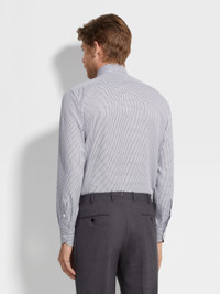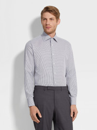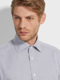 Featuring a navy blue and white checked pattern, this Centoventimila cotton long-sleeve shirt is a sartorial staple. INFO This elegant navy blue and white checked shirt is made from ZEGNA's Centoventimila cotton for a super-smooth, lightweight feel against the skin. Styled with long sleeves, a spread collar and standard cuffs. PRODUCT CODE 202113A2-9NS0LB MATERIALS AND CARE 100% Cotton Centoventimila – Italian for 120,000 – is named after its high thread count. Garments crafted from this fabric are extremely lightweight and have a soft, silk-inspired hand feel. Max washing temp 40°C. Do not bleach. Do not tumble dry. Iron at max 150°C. Professional dry cleaning in tetrachloroethene and hydrocarbons. FIT AND PRODUCT DETAILS • Regular fit • Tailoring shirt • Spread collar • Standard cuffs • Button closure • Checked pattern • 79 cm length on size 39