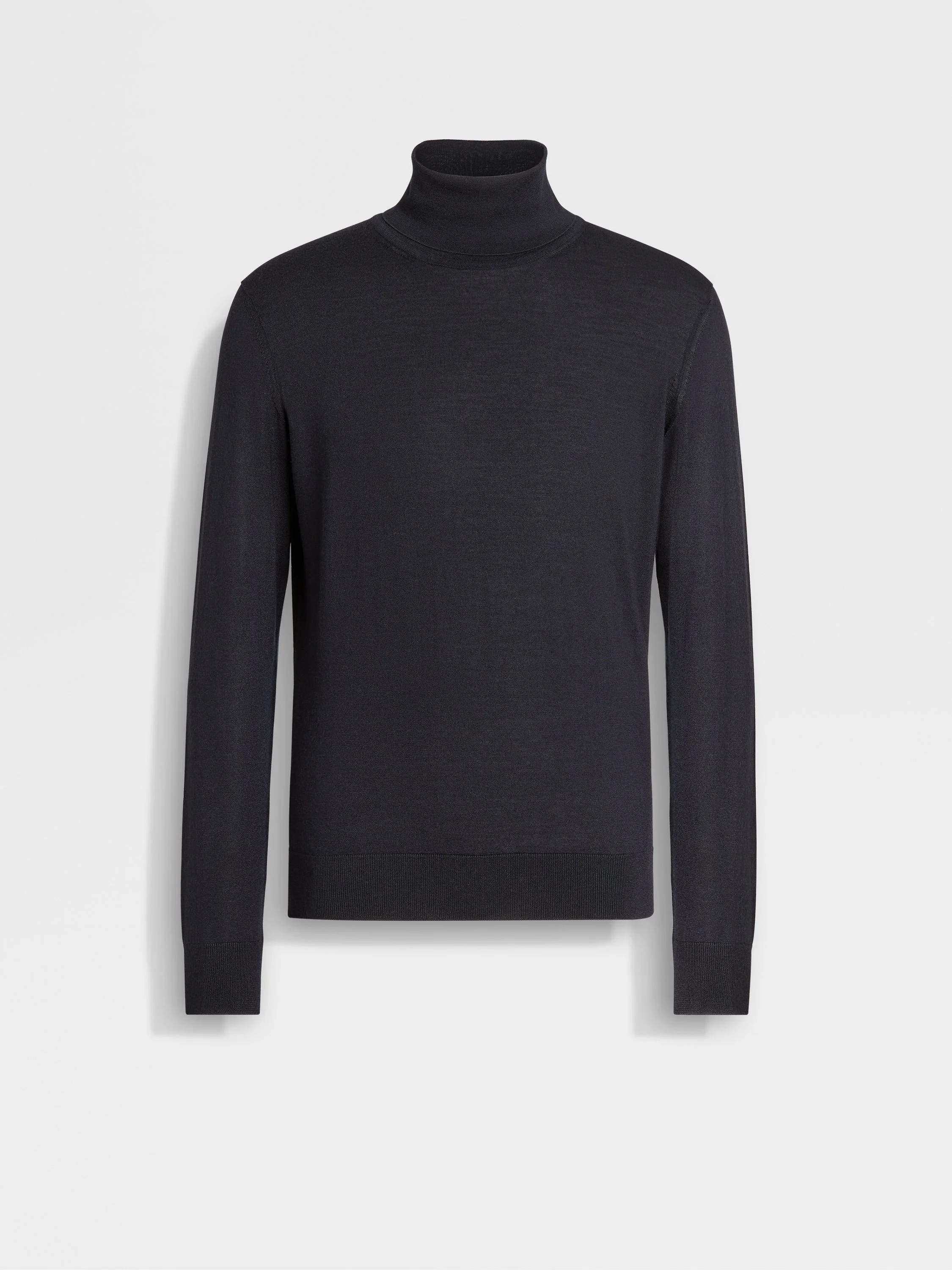 The navy blue Cashseta turtleneck brings together the best of cashmere and silk. INFO Zegna's refined blend of cashmere and silk lends the navy blue Cashseta turtleneck its distinctive finish. An elegant colorway complements the soft, natural knit. A staple of sophisticated wardrobes, the turtleneck creates a sleek silhouette. PRODUCT CODE E8J00-120-B98 MATERIALS AND CARE 70% Cashmere; 30% Mulberry Silk This sophisticated fabric combines the softness of cashmere with the smooth finish of fine silk. The yarns of Cashseta are dyed before the fabric is created, resulting in a mélange that is unique to each garment. Do not wash. Do not bleach. Do not tumble dry. Iron at max 110°C. Professional dry cleaning in hydrocarbons. FIT AND PRODUCT DETAILS • 18 gauge • Ribbed turtleneck • Long sleeves • Ribbed hem and cuffs • Regular fit