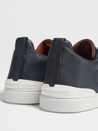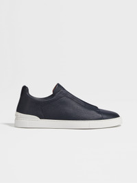 The navy blue deerskin Triple Stitch™ sneakers represent everyday luxury. INFO The navy blue deerskin Triple Stitch™ low top sneakers are a sophisticated take on casual footwear. The sneakers' signature triple-crossed elastics evoke the hand-stitching on our tailored jackets. The lightweight design is paired with a white rubber sole. Customize these sneakers with our Made to Measure Service. For more information, please contact our Customer Care or visit your nearest stores. PRODUCT CODE LHCVO-S4667Z-NAV MATERIALS AND CARE Deerskin Clean with a soft cloth. Avoid contact with abrasives, water and substances containing alcohol, such as perfumes, solvents, etc. In case of contact with water, it is important to let the footwear dry completely before cleaning. Clean the rubber soles with a product specifically designed for cleaning rubber. Store in the included dust bag in a cool, dry place. FIT AND PRODUCT DETAILS • Crossing elastics • Leather lining • Sanitized® insole • White rubber sole • Tonal Zegna 232 Road Brand Mark on the heel tab • Made in Italy • Comes with a shoe bag We want every pair of Triple Stitch™ sneakers to fit perfectly anytime, anywhere, anyplace. To find your perfect fit, we recommend going down a half-size compared to your usual shoe size. Please note that Zegna uses UK sizing. For further information, please contact us via our customer service channels or by visiting the nearest Zegna flagship store.