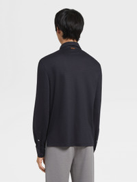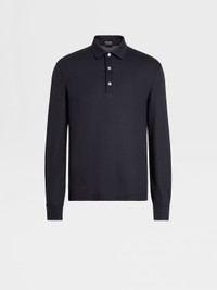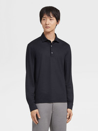 In cooler weather, opt for the navy blue High Performance™ Wool long-sleeve polo. INFO A staple of refined casual wear, the navy blue High Performance™ wool long-sleeve polo delivers all the advantages of Zegna's innovative all-season yarn. This softer, more breathable pure wool polo is styled with elegant shirt cuffs: ideal for casual meetings or a busy day around town. PRODUCT CODE UA345-ACT726-B09 MATERIALS AND CARE 100% Wool High Performance™ is made with an innovative yarn in a 100% natural all-season wool, softer and more breathable than standard wool, particularly resistant to pilling, that ensures absolute comfort and advanced breathability. The hygroscopic fibers provide smart moisture management by absorbing perspiration and gradually releasing it externally. Hand wash (30°C / 85°F) or dry clean. Do not bleach. Do not tumble dry. Line drying in shade. Regular ironing, steam or dry, may be performed at low setting (110°C / 230°F). FIT AND PRODUCT DETAILS • Long sleeves • Self fabric polo collar • Folded bottom • Shirt cuffs • Easy-folding sleeves • Breathable fabric • Regular fit • Model is 188 cm tall (6.2 feet) and wears an international size M.