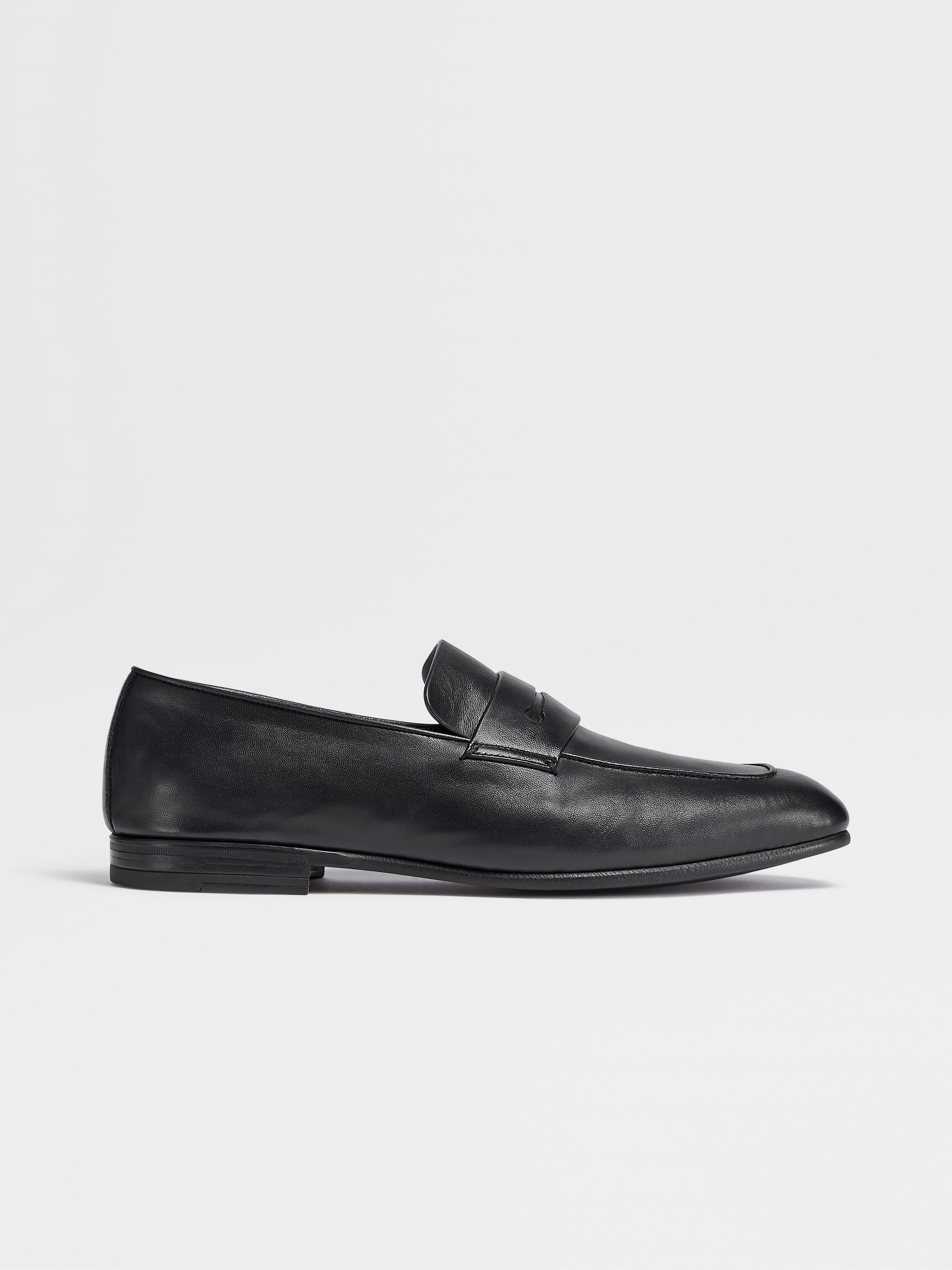 The black lambskin L'Asola loafers are named for the buttonhole, a detail in tailored suits. INFO Rich lambskin features the classic silhouette of the black L'Asola loafers. Designed with an ultra flexible reverse construction on flexible rubber sole, these loafers ensure the highest level of comfort all day long. The iconic L'Asola cut-out on the band signs off the look. PRODUCT CODE LHAFR-A4001Z-NER MATERIALS AND CARE Lambskin Clean with a soft cloth. Maintain the leather's glossy appearance by applying a small dab of polish and distributing it uniformly over the surface with a soft cloth. Let dry for a few minutes, then vigorously shine with clean, soft cloth. Avoid contact with abrasives, including hard-bristled brushes, and substances containing alcohol, such as perfumes, solvents, etc. In case of contact with water, it is important to let the footwear dry completely before cleaning. Store in the included dust bag in a cool, dry place. FIT AND PRODUCT DETAILS • Lambskin • L'Asola band • Reverse construction • Leather lining • Rubber outsole • Made in Italy • Fits true to size • Comes with a shoe bag