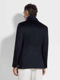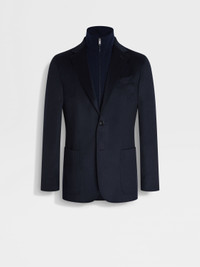 This navy blue Oasi Cashmere jacket features a detachable bib for endless versatility. INFO Showcasing ZEGNA's vision of quiet luxury, refined elegance and effortless functionality, this navy blue Oasi Cashmere jacket is made from one of the brand's most exclusive natural fibers. Styled with classic notch lapels, it features a detachable knit bib and roomy patch pockets. PRODUCT CODE UGC46A2-DYR-B09 MATERIALS AND CARE Main body: 100% Cashmere Leather details: Calfskin Lining: 53% Cotton; 47% Cupro The inspiration behind this Oasi Cashmere collection garment was born in Oasi Zegna, a 100km² natural territory and the home of our values. It's crafted from Oasi Cashmere fibres, made with 100% certified traceable fibres. The Oasi Cashmere collection follows in the footsteps of our Founder, who envisioned a vertically integrated system of producing textiles. Do not wash. Do not bleach. Do not tumble dry. Iron at max 110°C. Professional dry cleaning in hydrocarbons, mild process. Protect leather details before washing. Do not iron leather details. FIT AND PRODUCT DETAILS • Regular fit • Notch lapels • Detachable bib in knit Oasi Cashmere • Leather details • Button closure • Patch pockets • 73,5 cm length on size 48