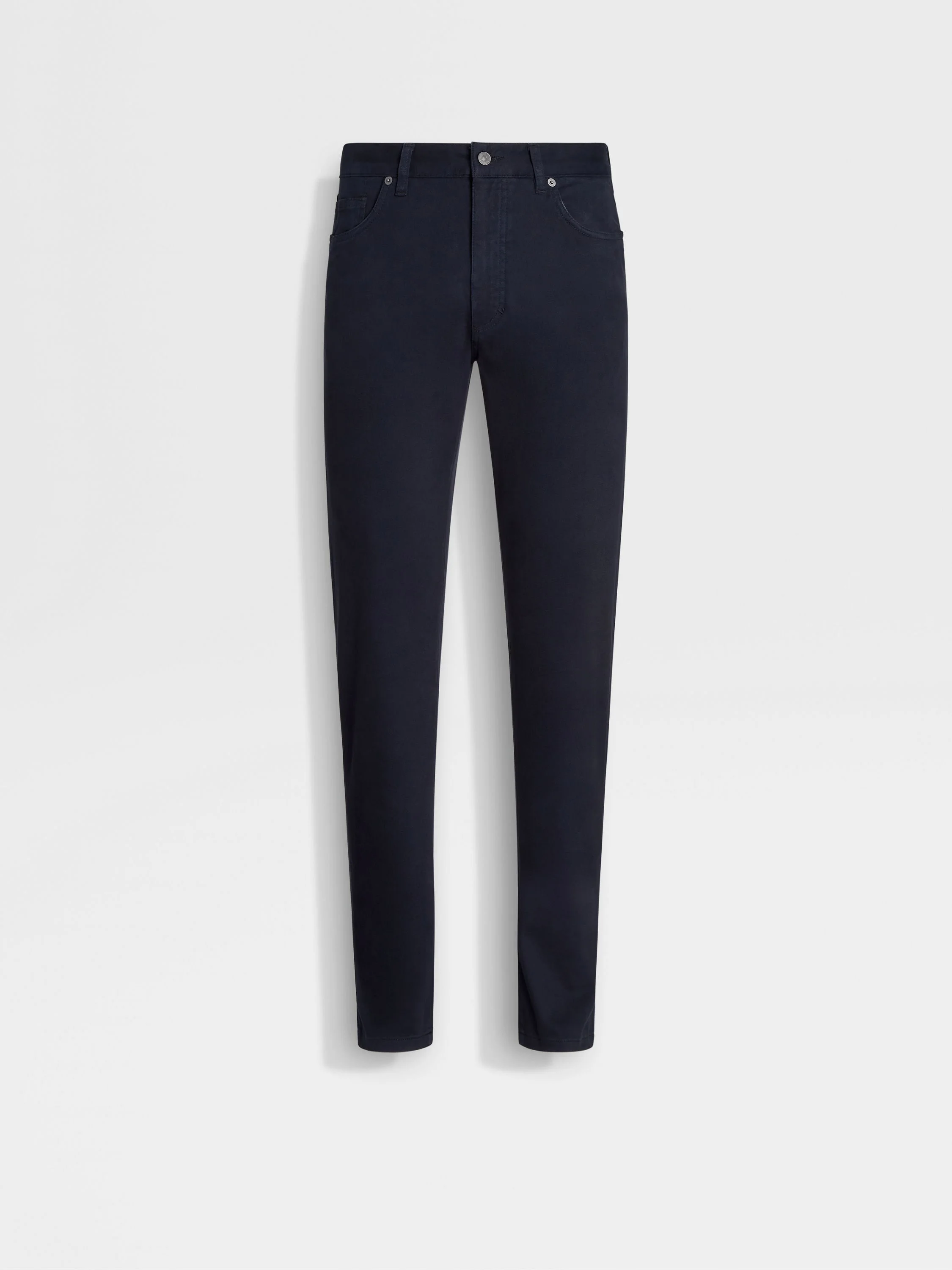 The navy blue stretch cotton Roccia jeans are presented in a versatile, garment-dyed colorway. INFO Enhanced with a touch of elasticity for added comfort, the navy blue stretch cotton Roccia jeans fit right into elegant contemporary wardrobes. The slim fit elongates the legs, in line with Zegna's vision of dynamic, contemporary menswear. The inspiration for the Roccia Jeans, Roccia the Italian word for 'Rock', was Born in Oasi Zegna — the home of our values in the Italian Alps. Inspired by classic workwear, they're both hardwearing and elegant, making them a reliable foundation to any look. PRODUCT CODE E8PZW-CITY-NAV MATERIALS AND CARE Main body: 98% Cotton; 2% Elastane Lining: 100% Cotton Max washing temp 30°C, mild process. Do not bleach. Do not tumble dry. Line drying in the shade. Iron at max 110°C. Do not dry clean. Wash separately. Wash inside out. FIT AND PRODUCT DETAILS • Slim fit • 17.5 cm narrow hem • Zip and button closure • 5-pocket style • Garment-dyed • Denim weight: 350 gr • Model is 188 cm tall (6.2 feet) and wears a UK size 32.