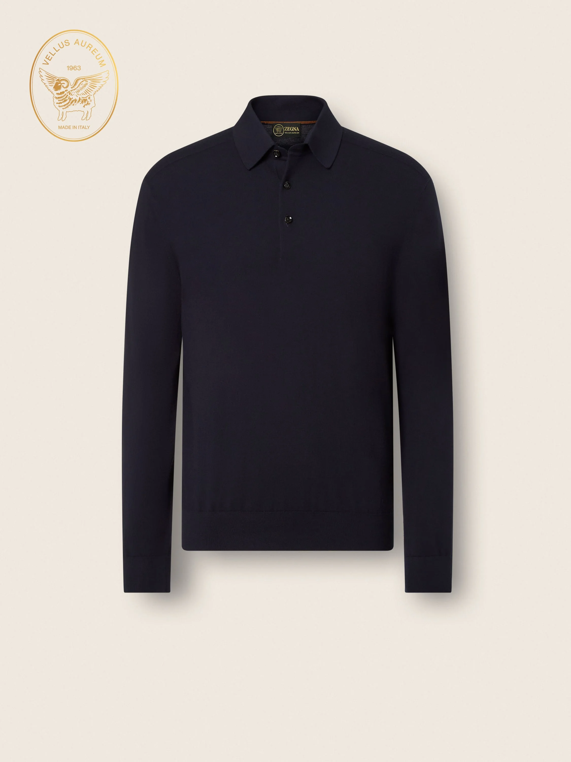 With its navy blue hue and luxuriously soft wool, this Vellus Aureum polo shirt defines elevated casualwear. INFO Knit from ultra-soft wool, this Notte Oasi Vellus Aureum polo shirt exemplifies ZEGNA’s approach to elevated leisurewear. Its regular fit and polo collar are complemented by ribbed detailing, adding depth to its understated sophistication. Notte Oasi (‘nɔt.te) – ITALIAN FOR 'NIGHT', this is the colour of the clear alpine nights in the mountains of Oasi Zegna. The tone is identified as matte dark navy blue. PRODUCT CODE UHA00A3-VELPOL-B09 MATERIALS AND CARE Main body: 100% Wool Leather details: Calfskin Vellus Aureum was inspired by our Founder’s quest for excellence to seek the finest wool in the world. Rare and exquisitely fine in texture, Vellus Aureum is crafted from 100% certified traceable wool fibres. Wash by hand. Do not bleach. Do not tumble dry. Flat drying. Iron at max 110°C. Professional dry cleaning in hydrocarbons, mild process. Wash and iron inside out. Protect buttons before cleaning. FIT AND PRODUCT DETAILS • Regular fit • Ribbed stitch • 21 gauge • Ribbed polo collar • Long sleeves • Ribbed hem and cuffs • Button closure • Suede flap patch chest pocket