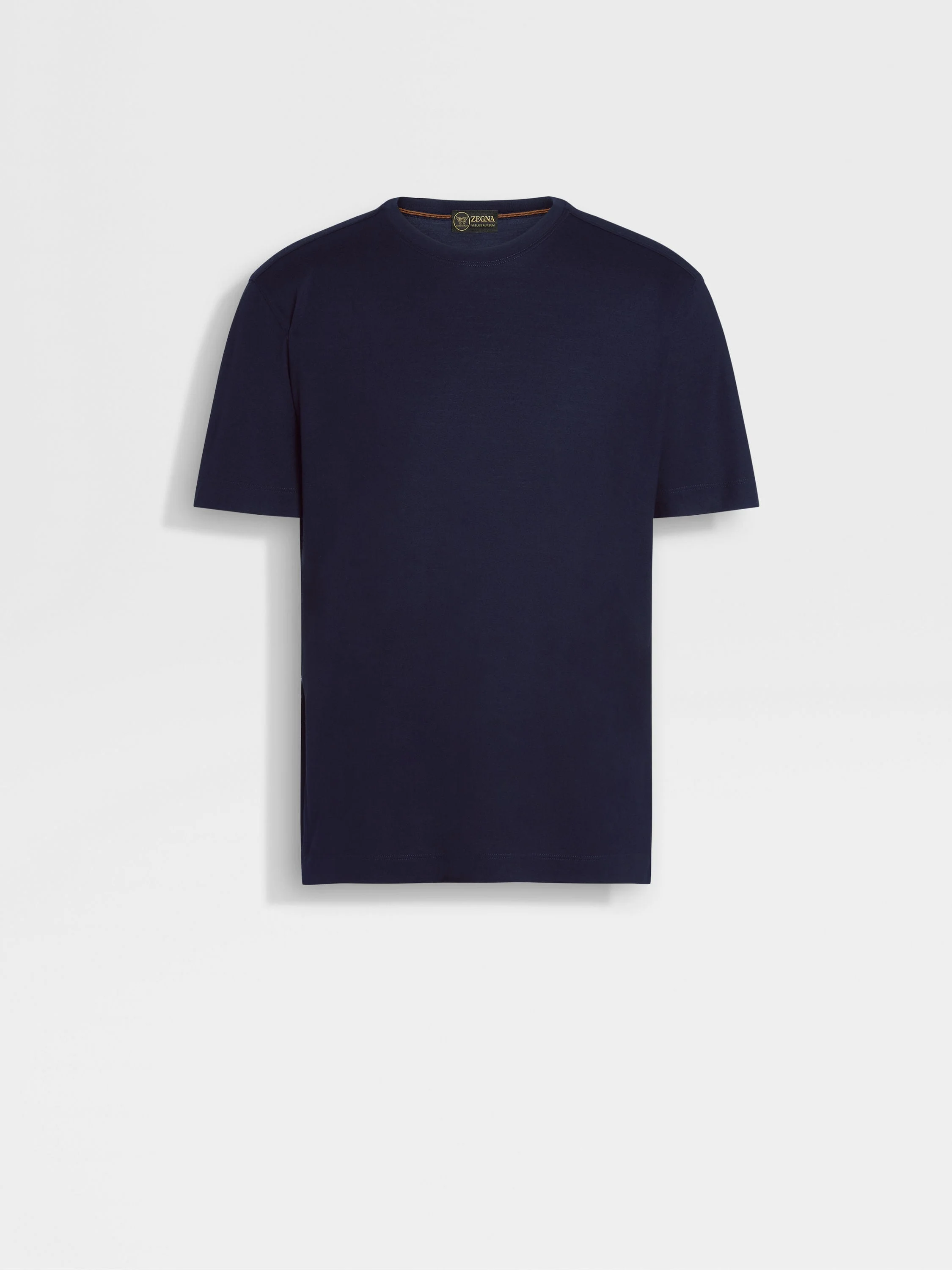 Introducing the navy blue Vellus Aureum T-shirt. Exceptional softness meets understated style for everyday wear. INFO The navy blue Vellus Aureum T-shirt reimagines a wardrobe staple through the lens of unique quality. Crafted from exceptionally fine wool, it offers softness and refinement. The regular fit, crewneck collar and short sleeves maintain a classic silhouette, while the tubular hem and cuffs ensure a clean finish. PRODUCT CODE UFV97A9-FV7VL8-B09 MATERIALS AND CARE 100% Wool Vellus Aureum was inspired by our Founder’s quest for excellence to seek the finest wool in the world. Exquisitely fine in texture and rare, Vellus Aureum is crafted from 100% certified traceable wool fibres. Do not wash. Do not bleach. Do not tumble dry. Iron at max 110°C. Professional dry cleaning in hydrocarbons. FIT AND PRODUCT DETAILS • Regular fit • Short sleeves • Crewneck collar • Tubular hem and cuffs