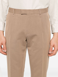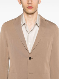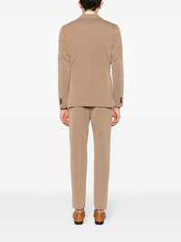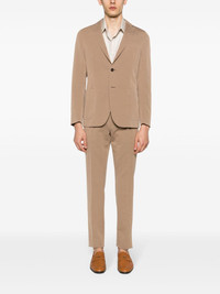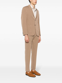 notched-lapels single-breasted suit Highlights - Light brown - Cotton blend - Interlock twill weave - Blazer: - Dart detailing - Notched lapels - Front button fastening - Long sleeves - Buttoned cuffs - Chest welt pocket - Two front patch pockets - English rear vents - Straight hem - Partial lining - Trousers: - Pleat detailing - Pressed crease - Mid-rise - Belt loops - Concealed front fastening - Two side slit pockets - Two rear jetted pockets - Tailored cut - Tapered leg Made in Italy Composition Outer: Cotton 84%, Silk 16% Lining: Viscose 100% SIZE & FIT Model measurements Height 6 ft 2 in(1.87 m) Bust/Chest 36.41 in(92.5 cm) Hips 35.43 in(90 cm) Waist 29.52 in(75 cm) FittingInformation Tailored for a slim fit, offering a comfortable fit that sits just away from the body The unfinished hems allow for the length to be altered Made from a midweight non-stretch fabric This piece fits true to size – take your usual size Washing instructions Dry Clean Only