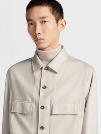 The white Oasi Cashmere Alba overshirt transforms a relaxed design with luxury materials. INFO Showcasing Zegna's uncompromising approach to natural materials, the white Oasi Cashmere Alba overshirt carries the brand's legacy of fine craftsmanship into a new era. The exceptionally soft quality of the cashmere elevates the informal design, which is completed with elbow patches and flap pockets. The inspiration for the iconic Alba Overshirt, Alba the Italian word for 'Sunrise', was Born in Oasi Zegna, the home of our values in the Italian Alps. It's crafted from Oasi Cashmere fibres, which ZEGNA commits to certifying as traceable from 2024. Wear it from dawn to dusk as either a shirt or lightweight jacket. PRODUCT CODE E8V46-SOT6-926 MATERIALS AND CARE Main body: 100% Cashmere Lining: 100% Polyester This Oasi Cashmere Collection garment was Born in Oasi Zegna, our 100km² natural territory and the home of our values. Crafted from cashmere of uncompromising quality and softness, the Oasi Cashmere Collection follows in the footsteps of our founder, who envisioned a vertically integrated system of producing textiles. Do not wash. Do not bleach. Do not tumble dry. Iron at max 110°C. Professional dry cleaning in tetrachloroethene and hydrocarbons, mild process. FIT AND PRODUCT DETAILS • Regular fit • Shirt collar • Button closure • Straight hem • Smooth shirt cuffs • Elbow patches • Chest flap pockets • 73 cm length on size 48