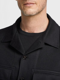 The black Oasi Cashmere Alba overshirt transforms a relaxed design into luxury leisurewear. INFO Showcasing Zegna's uncompromising approach to natural materials, the black Oasi Cashmere Alba overshirt carries the brand's legacy of fine craftsmanship into a new era. The casual style is emphasized by the luxurious texture of fine cashmere, blurring the boundaries between dressing up and dressing down. The inspiration for the iconic Alba Overshirt, Alba the Italian word for 'Sunrise', was Born in Oasi Zegna, the home of our values in the Italian Alps. It's crafted from Oasi Cashmere fibres, which ZEGNA commits to certifying as traceable from 2024. Wear it from dawn to dusk as either a shirt or lightweight jacket. PRODUCT CODE E8V46-SOT6-210 MATERIALS AND CARE Main body: 100% Cashmere Lining: 100% Polyester This Oasi Cashmere Collection garment was Born in Oasi Zegna, our 100km² natural territory and the home of our values. Crafted from cashmere of uncompromising quality and softness, the Oasi Cashmere Collection follows in the footsteps of our founder, who envisioned a vertically integrated system of producing textiles. Do not wash. Do not bleach. Do not tumble dry. Iron at max 110°C. Professional dry cleaning in tetrachloroethene and hydrocarbons, mild process. FIT AND PRODUCT DETAILS • Regular fit • Shirt collar • Button closure • Straight hem • Smooth shirt cuffs • Elbow patches • Chest flap pockets • 73 cm length on size 48