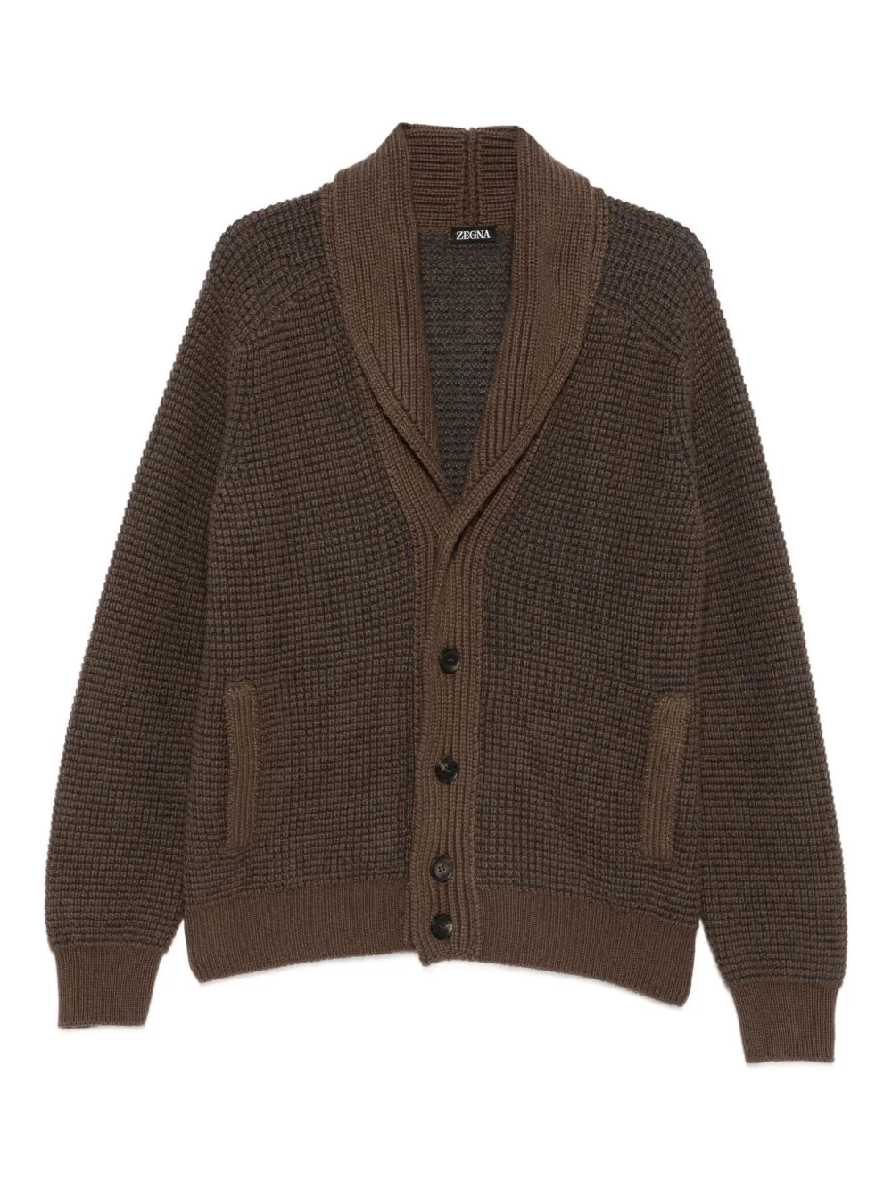 shawl-collar waffle-knit cardigan