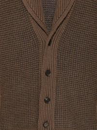 shawl-collar waffle-knit cardigan Highlights - Brown - Shawl collar - Waffle knit - Button fastening - Side pockets - Ribbed hem Imported Composition Fabric 100% Washing instructions Read Manufacturer Guidelines