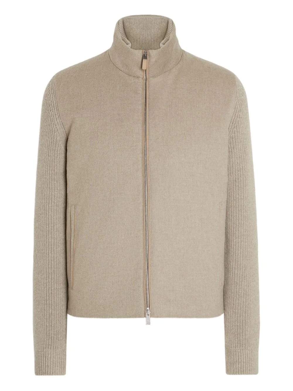 Oasi-cashmere cardigan Highlights - Light beige - Ribbed panel - Zip fastening - High neck - Side pockets Made in Italy Composition Outer: Cashmere 100% Lining: Cashmere 60%, Polyester 40% Washing instructions Dry Clean Only