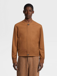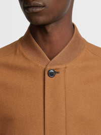 The Oasi Cashmere Elements bomber blends natural materials with functionality. INFO Slightly felted for textured appeal, Zegna's exclusive, extra-fine cashmere gives the dark Foliage Oasi Cashmere Elements bomber its beautifully soft finish. The sporty bomber jacket features the classic, ribbed collars and trim. Leather details add a final touch of flair. Customize this item with our Made to Measure Service. For more information, please contact our Customer Care or visit your nearest stores. PRODUCT CODE UCT46A6-C119-155 MATERIALS AND CARE Main body: 100% Cashmere Leather details: Calfskin Lining: 100% Polyester This Oasi Cashmere Collection garment is crafted from soft cashmere that's specially treated with a breathable water-resistant membrane — a tribute to our founder's legacy of textile innovation. Do not wash. Do not bleach. Do not tumble dry. Iron at max 110°C. Professional dry cleaning in hydrocarbons, mild process. Professional leather clean only. Protect leather details before washing. Protect the metal accessories during washing. FIT AND PRODUCT DETAILS • Regular fit • Ribbed bomber collar • Zip and button closure • Half-ribbed hem • Ribbed cuffs • Leather details • Slightly felted fabric • Side straight pockets with concealed snap buttons • Water-repellent treatment • 64 cm length on size 48 • Model is 187 cm tall (6.1 feet) and wears an Italian size 48.