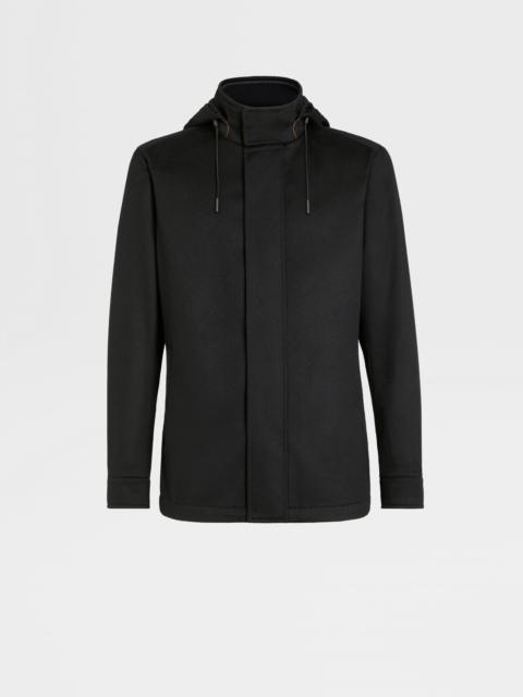 The navy blue Oasi Cashmere Elements hooded Cima overjacket reflects a sophisticated approach to leisurewear. INFO Showcasing Zegna's uncompromising approach to natural materials, the navy blue Oasi Cashmere Elements hooded Cima overjacket continues a tradition of luxury outerwear. Soft, lightweight cashmere lends its characteristic elegance to the contemporary silhouette. Distinctive leather details sign off the look. The inspiration for the Cima Jacket, Cima the Italian word for 'Summit', was Born in Oasi Zegna — the home of our values in the Italian Alps. It's crafted from Oasi Cashmere fibres, which ZEGNA commits to certifying as traceable from 2024. The pinnacle of our outdoor-ready offering, wear it for warmth during revitalising hikes. PRODUCT CODE E7T42-7210-531 MATERIALS AND CARE Main body: 100% Cashmere Leather details: Calfskin Lining: 100% Polyester This Oasi Cashmere Collection garment is crafted from soft cashmere that's specially treated with a breathable water-resistant membrane — a tribute to our founder's legacy of textile innovation. Do not wash. Do not bleach. Do not tumble dry. Iron at max 110°C. Professional dry cleaning in hydrocarbons, mild process. Professional leather clean only. Protect leather details before washing. Protect metal accessories during washing. FIT AND PRODUCT DETAILS • Regular fit • Stand collar with hood • Zip and button closure • Open hem • Leather details and drawstring • Welt pockets • Water-repellent • 74 cm length on size 48